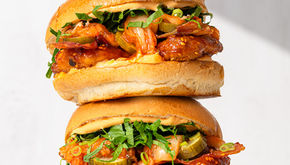 Kóreskir kjúklingaborgarar með kimchi, beikoni og gochujang sósu
